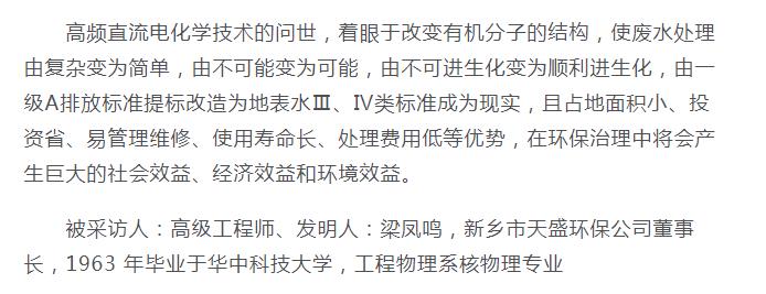中國高新技術(shù)網(wǎng)發(fā)布:《關(guān)注:解碼科技創(chuàng)新》——新鄉(xiāng)市天盛環(huán)保“超強(qiáng)氧化還原廢水處理技術(shù)”
